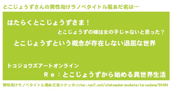 | ヒーロー風カッコイイあだ名 | 『ネオトコジョウズ』『天弓騎士トコ』 |