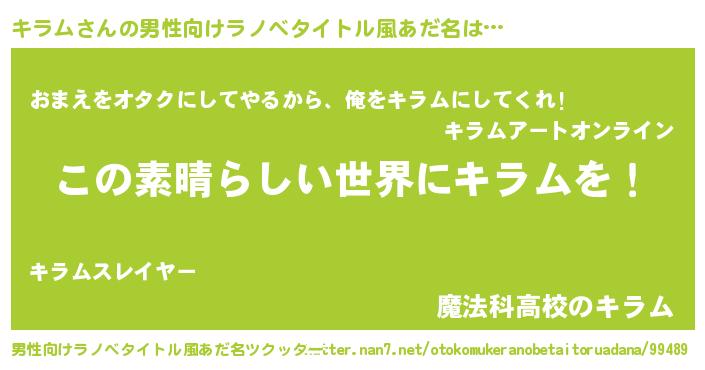 | 意味不明あだ名 | 『住所不定無職キラム(47歳)』『自称キラム』 |