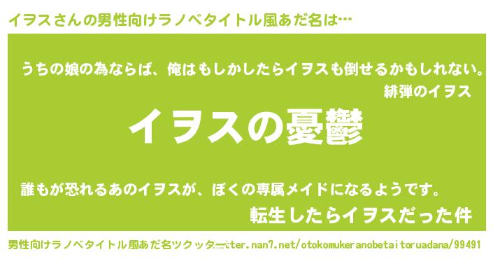 | 女子向けラノベタイトル風あだ名 | 『(仮)イヲスのやんごとなき事情』 |