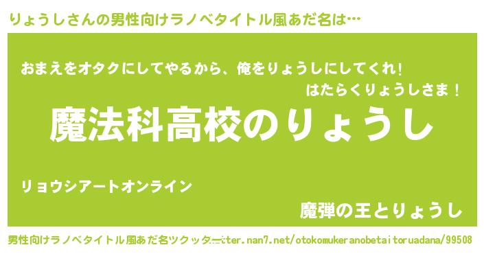 | 意味不明あだ名 | 『自称りょうし』『ペロリンりょうし』 |