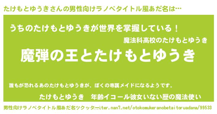 | 意味不明あだ名 | 『住所不定無職たけもとゆうき(6歳)』 |