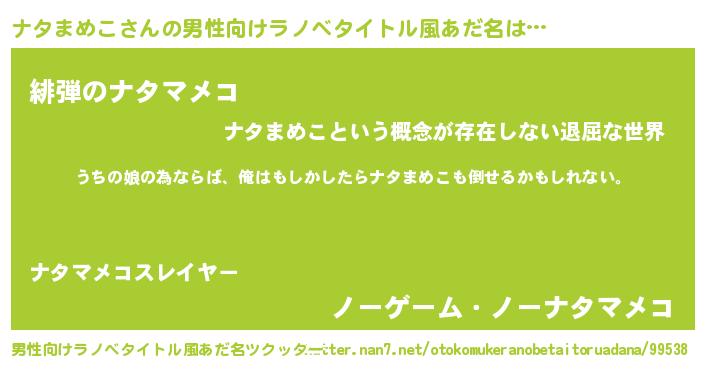 | 女子向けラノベタイトル風あだ名 | 『ナタまめこの婚約者』 |