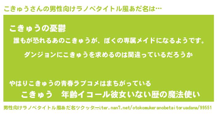 | ヒーロー風カッコイイあだ名 | 『黄金騎士コキ』『スーパーコキュウ』 |
