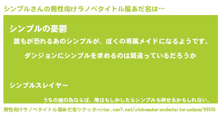 | 女子向けラノベタイトル風あだ名 | 『シンプルの卵を拾いまして』 |