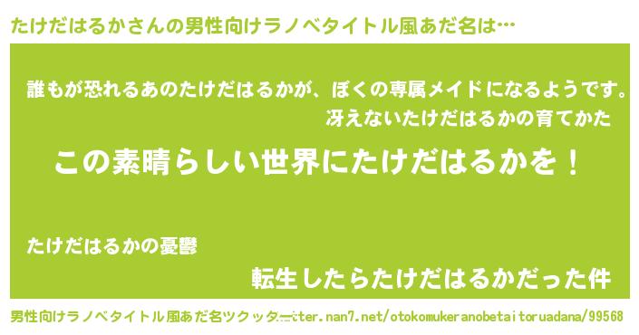 | 女子向けラノベタイトル風あだ名 | 『乙女ゲームの破滅フラグしかない悪役たけだはるかに転生してしまった…』 |