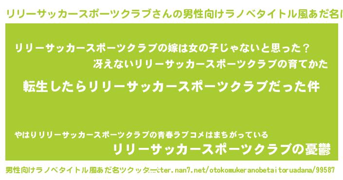 | 女子向けラノベタイトル風あだ名 | 『婚約破棄系悪役リリーサッカースポーツクラブに転生したので、保身に走りました。』 |
