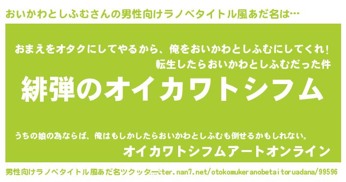 | 欧米人風あだ名 | 『おいかわとしふむ・ステッグマイヤー』 |