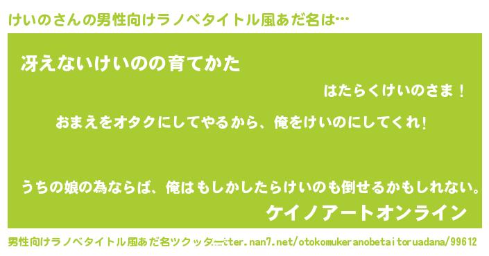 | 女子向けラノベタイトル風あだ名 | 『けいの恋絵巻』『首の姫と首なしけいの』 |