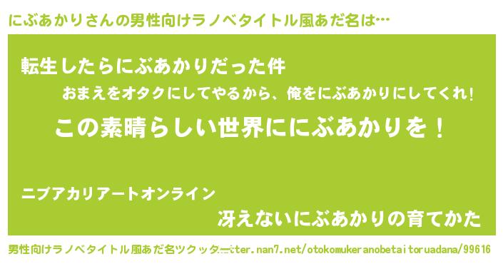 | 意味不明あだ名 | 『住所不定無職にぶあかり(41歳)』 |