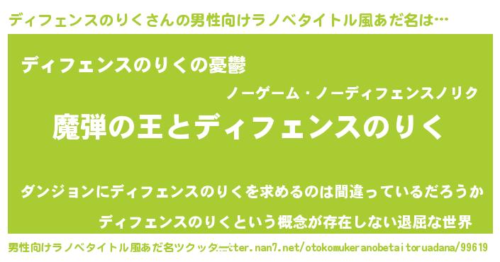 | 胡散臭い通販商品みたいなあだ名 | 『世界中を虜にした100年もののヴィンテージワイン…その名も「ディフェンスのりく」』 |