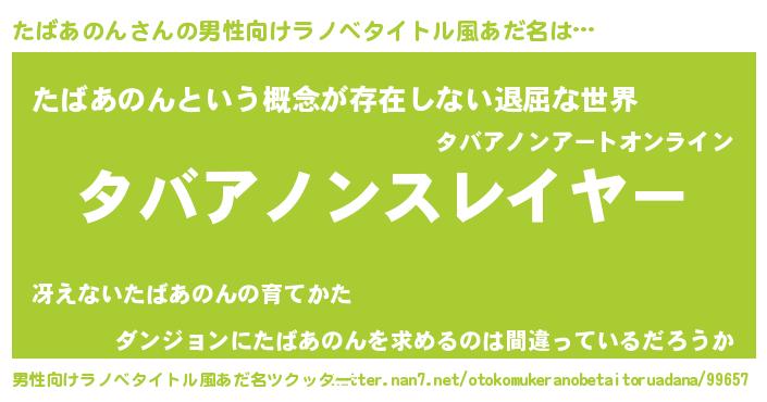 | ヘコむあだ名 | 『たばあのん(震え声)』『たばを』 |