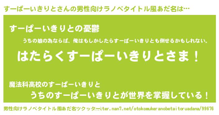| 胡散臭い通販商品みたいなあだ名 | 『モテモテ間違いなし霊験あらたかなお札…その名も「すーぱーいきりと」』 |