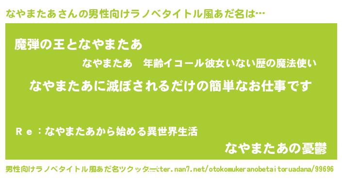 | ヒーロー風カッコイイあだ名 | 『仮面ナヤダー』『スーパーナヤマタア』 |