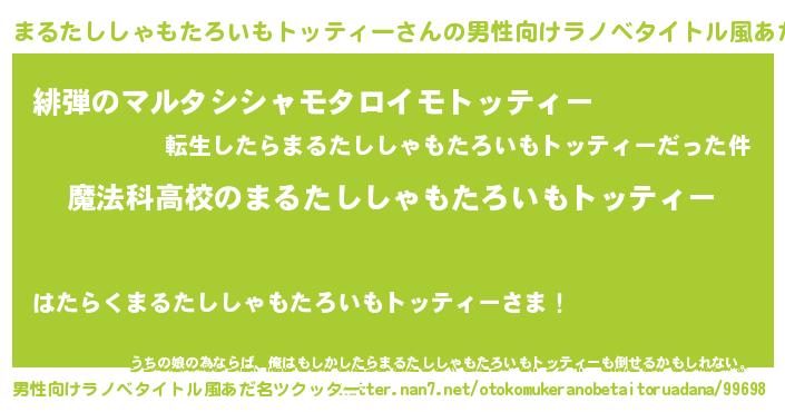 | ヒーロー風カッコイイあだ名 | 『ウルトラ戦士マルタシシャモタロイモトッティー』 |