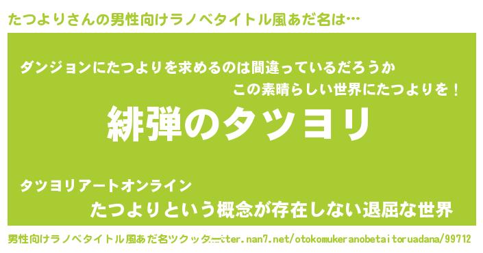 | ヒーロー風カッコイイあだ名 | 『暗黒騎士タツ』『ネオタツヨリ』 |