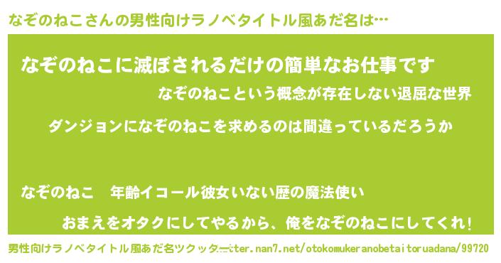 | ヘコむあだ名 | 『なぞ太郎』『なぞのねこ(震え声)』 |
