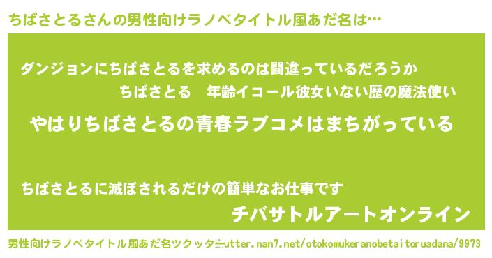 | 胡散臭い通販商品みたいなあだ名 | 『幸せが訪れる高級そうな壺…その名も「ちばさとる」』 |