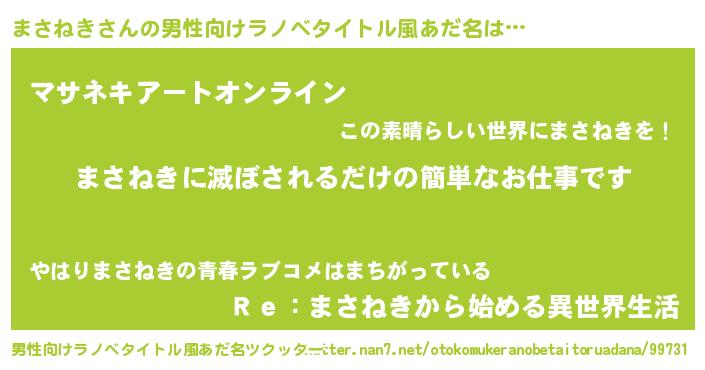 | ヒーロー風カッコイイあだ名 | 『スーパーマサネキ』『最強戦士マサネキ』 |