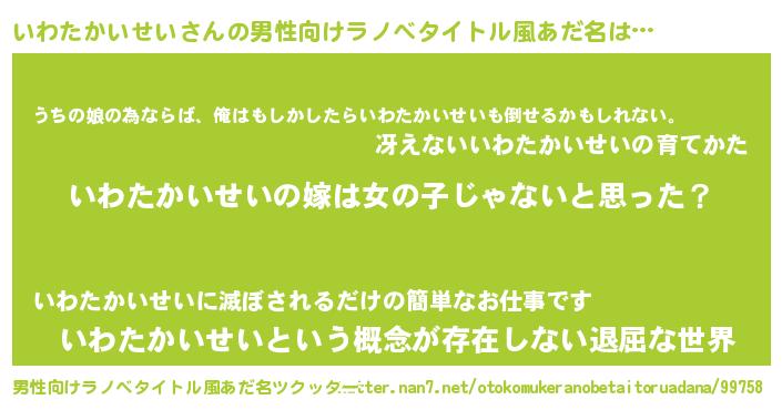 | 胡散臭い通販商品みたいなあだ名 | 『全米が絶賛したサプリメント…その名も「いわたかいせい」』 |