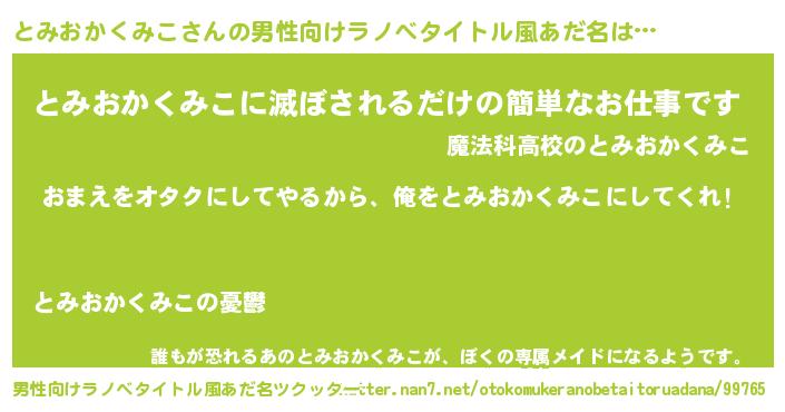 | 女子向けラノベタイトル風あだ名 | 『とみおかくみこ夫妻のなれそめ』 |