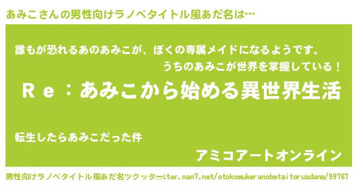 | 意味不明あだ名 | 『自称あみこ』『永久保存あみこ』 |
