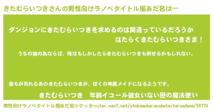 | 女子向けラノベタイトル風あだ名 | 『きたむらいつきの婚約者』 |