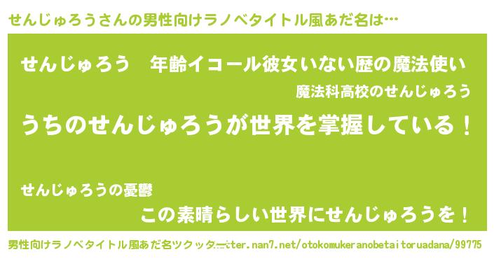 | 女子向けラノベタイトル風あだ名 | 『男装せんじゅろうの憂鬱な任務』 |