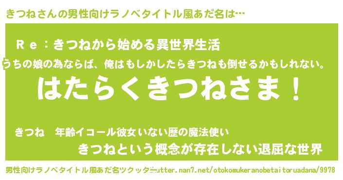 | 女子向けラノベタイトル風あだ名 | 『首の姫と首なしきつね』『闇のきつね』 |