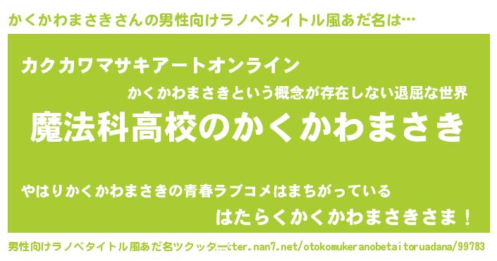| 女子向けラノベタイトル風あだ名 | 『かくかわまさきなんてお断りですっ。』 |