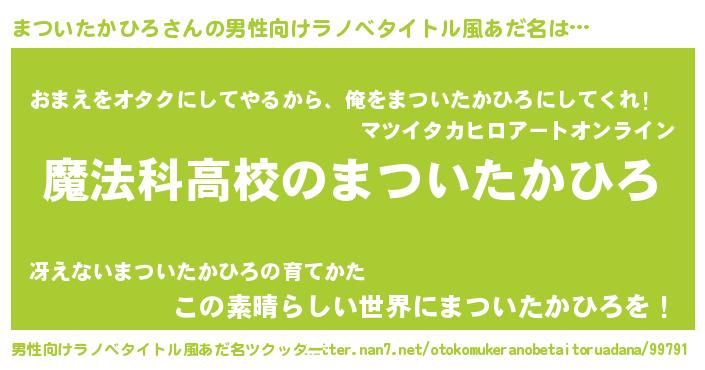 | 女子向けラノベタイトル風あだ名 | 『まついたかひろなんてお断りですっ。』 |