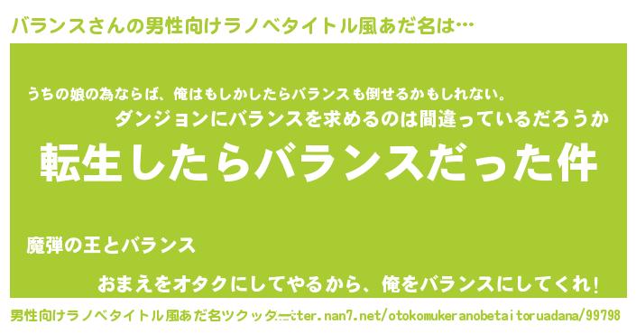 | 女子向けラノベタイトル風あだ名 | 『バランスの玉の輿計画!』 |