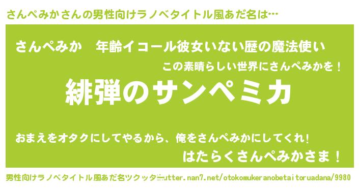 | 女子向けラノベタイトル風あだ名 | 『シンデレラさんぺみか家の靴箱館』 |