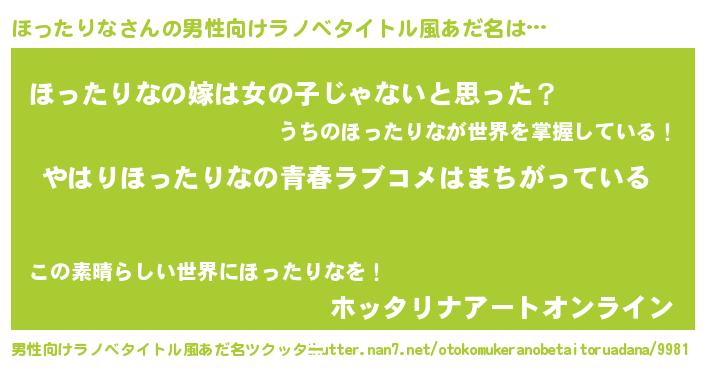 | 胡散臭い通販商品みたいなあだ名 | 『世界が平和になる高級そうな壺…その名も「ほったりな」』 |