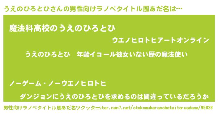 | 女子向けラノベタイトル風あだ名 | 『うえのひろとひの玉の輿計画!』 |