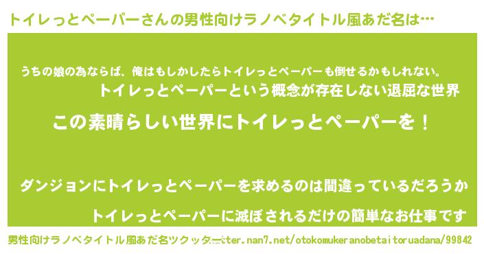 | 意味不明あだ名 | 『住所不定無職トイレっとペーパー(81歳)』 |