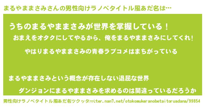 | 女子向けラノベタイトル風あだ名 | 『まるやままさみの雑貨屋さん』 |