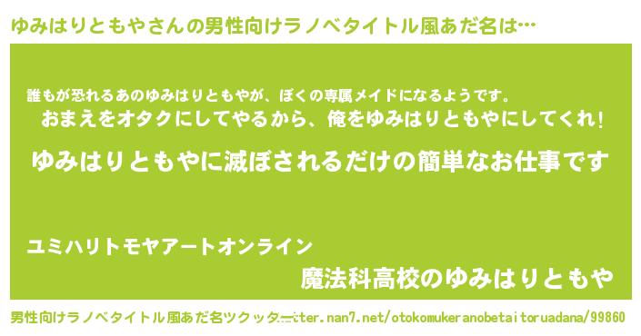 | ヒーロー風カッコイイあだ名 | 『ネオユミハリトモヤ』『魔戒騎士ユミ』 |