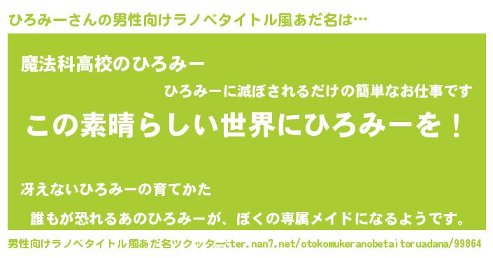 | ヒーロー風カッコイイあだ名 | 『仮面ヒロダー』『ウルトラ戦士ヒロミー』 |