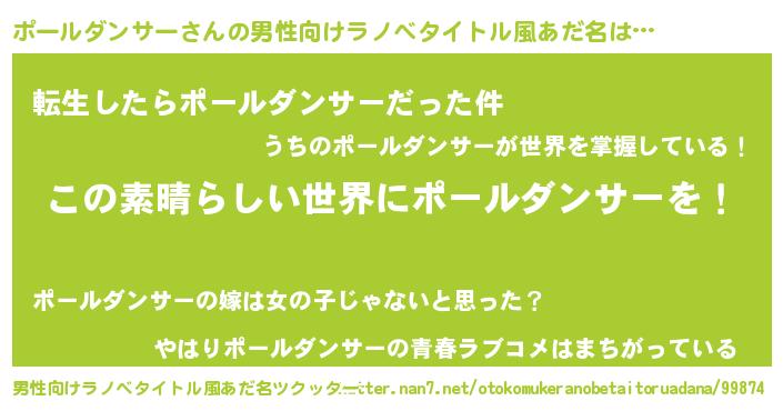 | 意味不明あだ名 | 『住所不定無職ポールダンサー(50歳)』 |