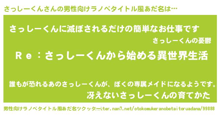 | 女子向けラノベタイトル風あだ名 | 『さっしーくんストレイドッグス』 |