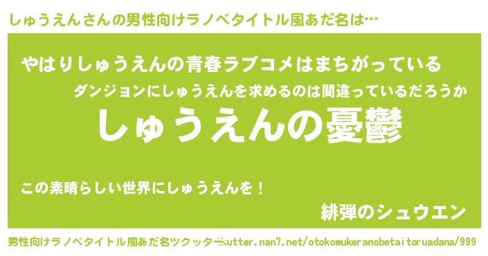 | 胡散臭い通販商品みたいなあだ名 | 『必ず成功する水晶球…その名も「しゅうえん」』 |