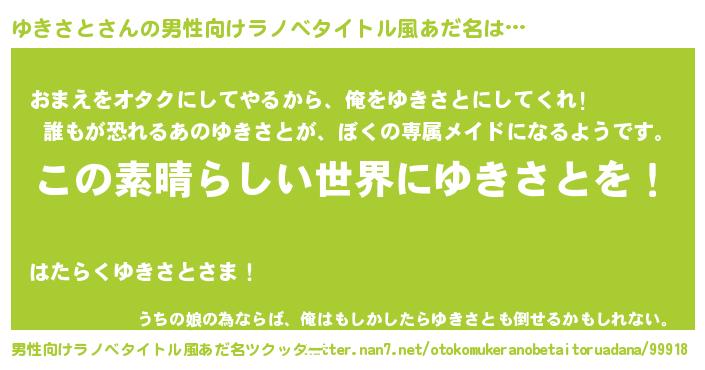 | 意味不明あだ名 | 『住所不定無職ゆきさと(71歳)』 |