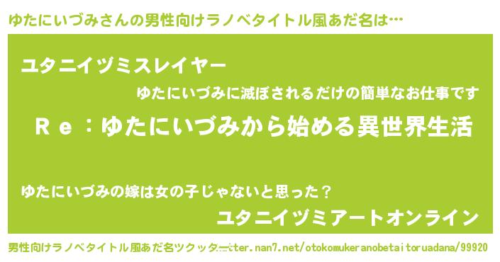 | 女子向けラノベタイトル風あだ名 | 『ゆたにいづみストレイドッグス』 |