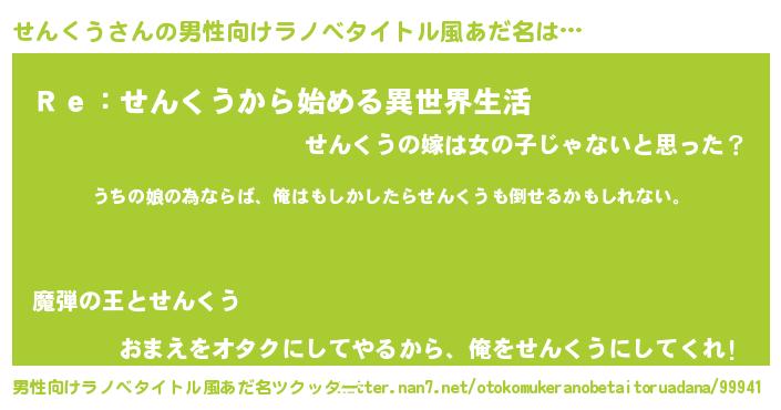| 女子向けラノベタイトル風あだ名 | 『せんくうの婚約者』『闇のせんくう』 |