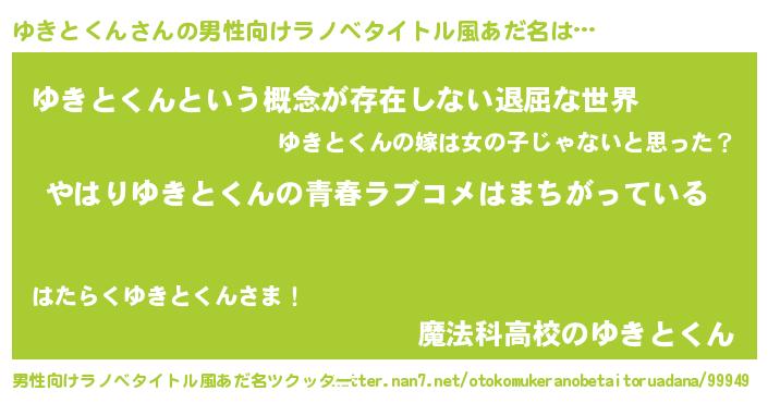 | 女子向けラノベタイトル風あだ名 | 『ゆきとくんの雑貨屋さん』 |