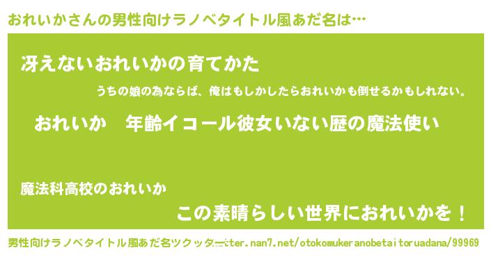 | ヒーロー風カッコイイあだ名 | 『仮面オレダー』『ウルトラおれいかマン』 |