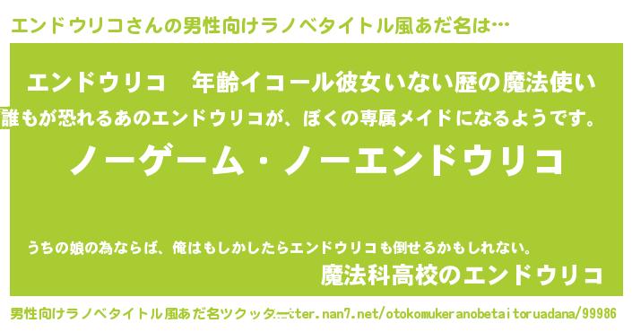 | ヘコむあだ名 | 『エンドウリコ(笑)』『牛乳』 |