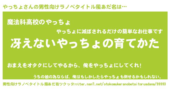 | 胡散臭い通販商品みたいなあだ名 | 『テレビで話題のアガリクス…その名も「やっちょ」』 |