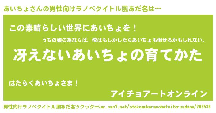 | 意味不明あだ名 | 『住所不定無職あいちょ(65歳)』 |