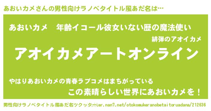 | 女子向けラノベタイトル風あだ名 | 『誰かこのあおいカメを説明してください! ~契約から始まるウェディング~』 |
